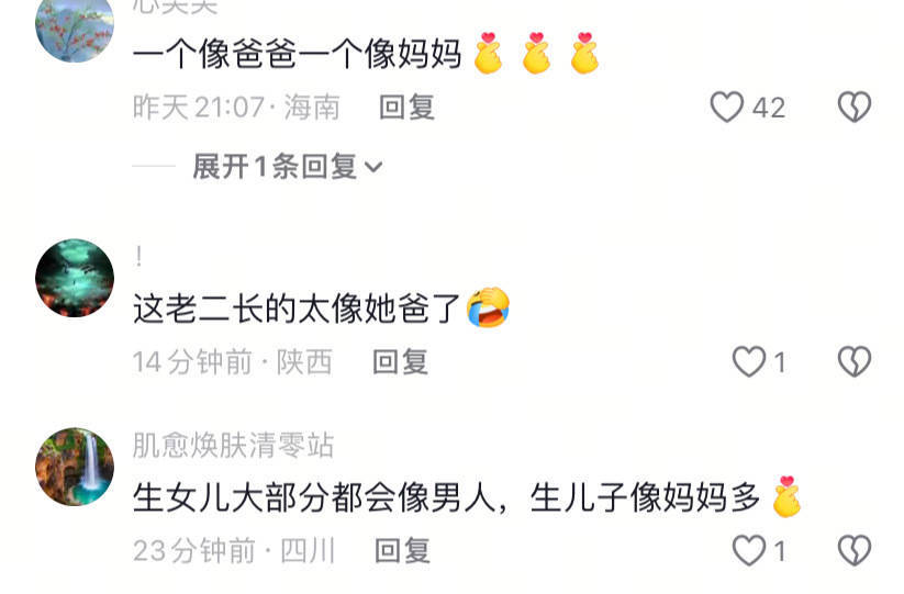 这两个女儿,真的是一个像爸爸、一个像妈妈。齐刘海的妹妹,也就是“龅牙妹”长得更像爸爸。姐姐甜美一些,五官面相更像妈妈。